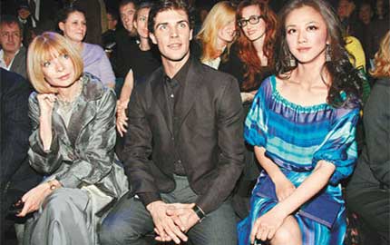 汤唯(右起)获大会安排与Roberto Bolle及Anna Wintour并排而坐,尽显国际地位。图片来自香港太阳报。