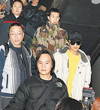 谢霆锋(右)昨在多位保全与助理护航下抵港。