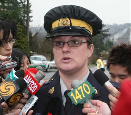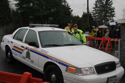 本拿比皇家骑警发言人就一名记者被捕事件接受采访,该记者怀疑冒充亲友而被警方带走,并遭没收摄影器材。