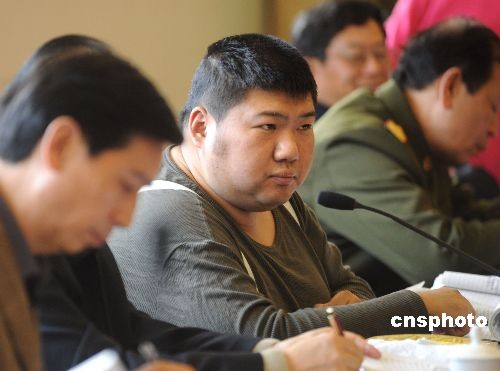 毛泽东之孙、全国政协十一届一次会议新委员毛新宇(中),在北京参加新委员培训讨论。毛新宇是军事科学院战争理论和战略研究部正师职研究员。