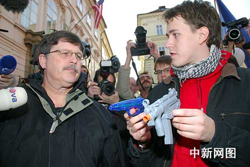 中新网布拉格3月16日电 在昨天下午布拉格举行的反对美国在捷克建立中欧导弹防御系统的雷达基地的示威游行中,捷克示威民众要求美国驻捷克大使馆向美国政府转交他们寻获的所谓“伊朗大规模杀伤性武器”的证据,而这些证据实际上只是一些塑料儿童玩具。示威者用一种特殊方式嘲笑和讥讽美国政府寻找战争借口如同儿戏,入侵伊拉克还想打伊朗。