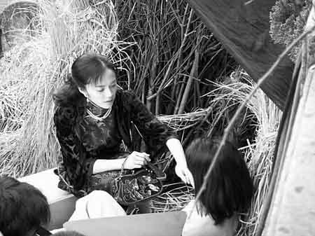 昨天拍的戏围绕寺院中进行,他们在寺院内外,与敌特斗智斗勇。先从她和一名演员一起进香开始,三个小时下来,姚晨在镜头前硬是没有笑一下。倒是拍摄间隙,因为忘记了台词,姚晨露齿笑了一下,“我忘词了。”让人见识了“郭芙蓉”的魅力。记者特选取了几个镜头,看看姚晨的严肃模样。