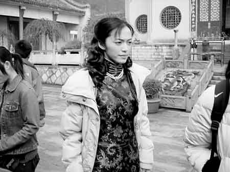 可能是受这部戏的影响,昨天的姚晨显得安静,也很严肃。与荧屏上“疯癫”的形象大不相同。在拍戏间隙,她就坐在椅子上,低头背台词。