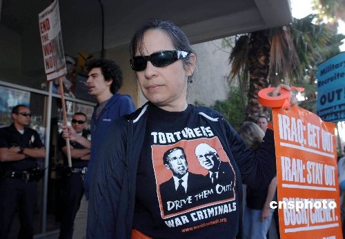 三月十九日下午,洛杉矶数十名反战人士走上著名的好莱坞“星光大道”,抗议美国五年前的今天发动伊拉克战争,高呼“关闭战争机器”、“立即结束战争”等口号。当天的抗议活动由一个名为“洛杉矶响应”的反战组织发起,参加抗议的人士以洛杉矶地区的大学生为主。中新社发 张炜 摄