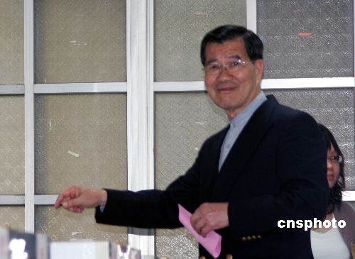 二00八台湾地区领导人选举投票三月二十二日举行,中国国民党候选人萧万长与夫人在台北一个投票所投票。中新社发 黄少华 摄
