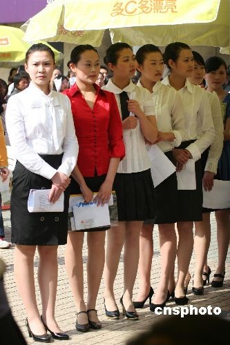 3月22日,2008中国新空姐招募大会在郑州二七广场举行揭幕仪式。当日,来自全国各地的两千多位美女云集郑州报名应聘。据介绍,这是有史以来最大规模的空姐招募,此次招募大会计划在全国招募500名空姐,其中郑州地区招募55名空姐。中新社发 陈代述 摄