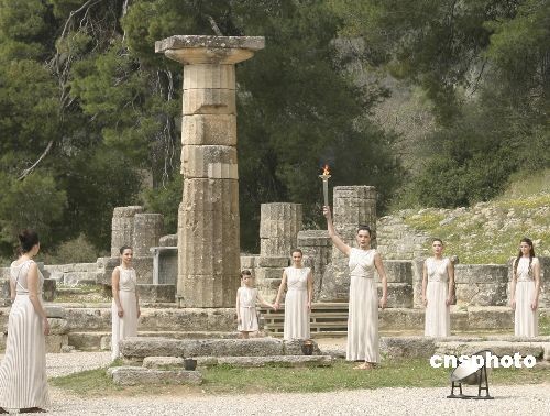 组图:中外奥运火炬手齐聚希腊
