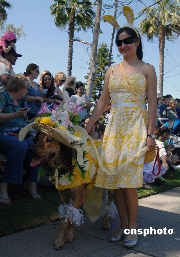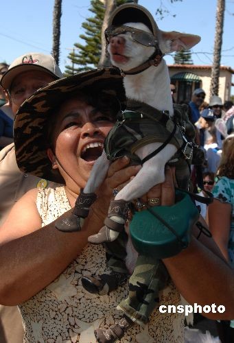 图为一只洛杉矶长滩爱犬参加“选美”。中新社发 张炜 摄