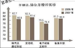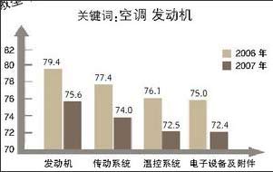 初始质量各环节满意度均低于2006年,其中“发动机”和“刹车系统”满意度降幅最大。