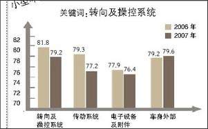 初始质量各环节满意度得分均低于2006年得分,其中“刹车系统”满意度降幅最大。