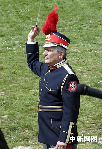希腊当地时间3月24日,北京二00八年奥运会圣火采集仪式在古奥林匹亚竞技场举行。图为仪式现场的乐队指挥。 中新社记者 王欢