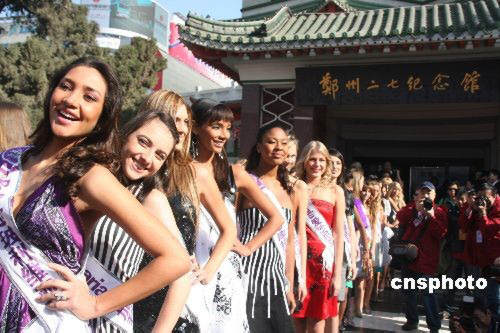 3月24日,“2008郑州城市休闲游·国际旅游小姐走进百年德化”启动仪式在郑州二七广场举行。来自115个国家和地区的115名2008年国际旅游小姐出席了启动仪式。中新社发 陈代述 摄