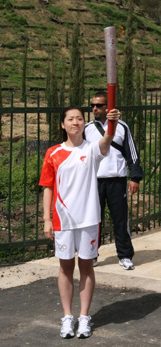 第一位中国火炬手罗雪娟。中希时报 汪鹏摄