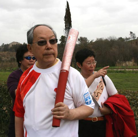 北京奥运圣火传递第十五棒中国工程院院士刘鸿亮。中希时报 汪鹏摄