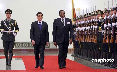 中国国家主席胡锦涛在北京人民大会堂举行仪式,欢迎来访的马拉维共和国总统宾古·瓦·穆塔里卡。中新社发 盛佳鹏 摄