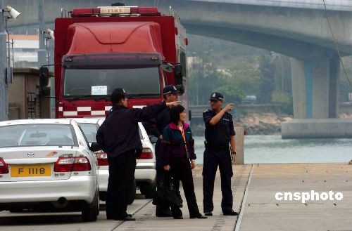 三月二十五日,香港警队高层视察沉船的现场。中新社发 谭达明 摄