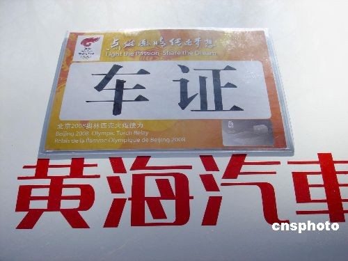 点燃激情传递梦想--奥运圣火传递车证。中新社发 邵风雷 摄