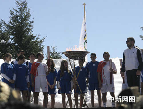 3月26日,北京奥运会圣火希腊境内传递第三日,抵达冰雪覆盖的山城迈措翁。圣火在冰雪世界熊熊燃烧。中新社记者 王欢