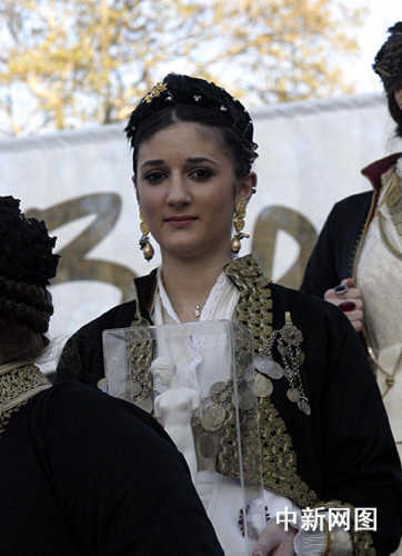 3月26日,北京奥运会圣火希腊境内传递第三日,抵达当天最后一个城市韦里亚。图为庆典仪式上的礼仪小姐。中新社记者 王欢