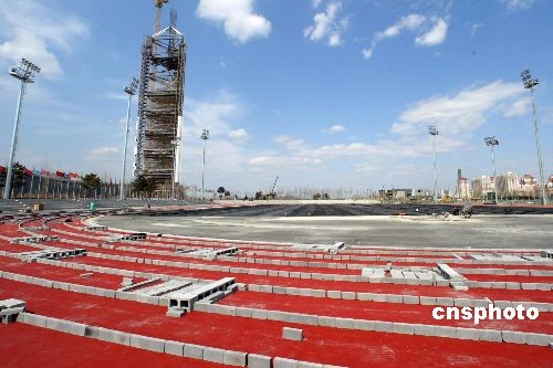 图:奥运“鸟巢”热身场地塑胶跑道铺设基本完成(2)