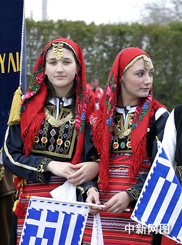 3月27日,北京奥运圣火希腊境内第四天传递,在派拉古城遗址举行庆典仪式。图为身穿当地特色服装的少女。中新社记者:王欢