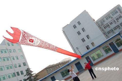 喜迎奥运圣火 “祥云火炬”风筝潍坊试飞(5)
