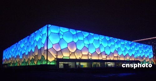 组图:“水立方”姹紫嫣红喜迎圣火到京(3)