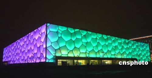 组图:“水立方”姹紫嫣红喜迎圣火到京(7)