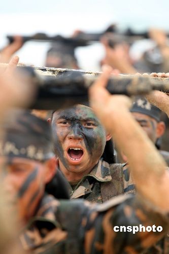 图为中国陆战队员进行沙滩体能训练。中新社发 李唐 摄