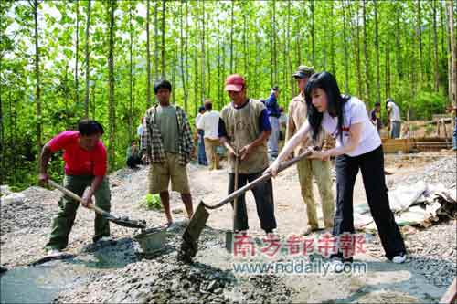 组图:周慧敏赴云南农村扶贫 下田织布吃农家饭(3)