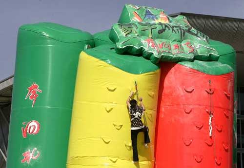今年的海选比赛项目相比往年更加刺激有趣,包括:勇攀高峰、铁人三项赛、跋山涉水、遇水迭桥、控球挑战赛、击剑,这几个游戏设计别出心裁——“勇攀高峰”让不经常远足的市民体验到了登山的挑战与乐趣、“遇水迭桥”让走惯水泥路面的市民体验到了自己“筑路修桥”的辛苦、“击剑”让只能在电视中看到的体育项目也成为普通人能亲自参与的运动……记者在现场看到,刺激有趣的游戏让每一个参赛者都玩得格外尽兴。难怪《蒙牛城市之间》被群众们赋予了“全民体育嘉年华”的美誉。