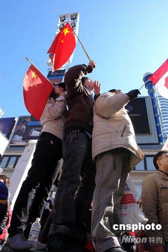 组图:海外同胞支持北京奥运 护卫圣火传递 (3)
