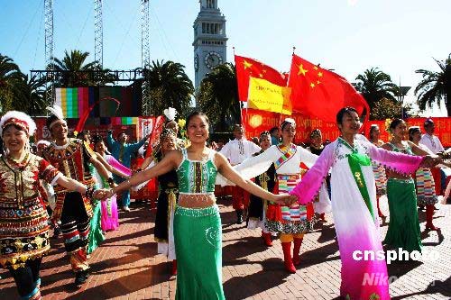组图:海外同胞支持北京奥运 护卫圣火传递 (7)