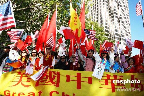 组图:海外同胞支持北京奥运 护卫圣火传递 (8)