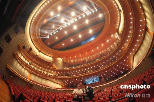 4月15日,朝鲜血海歌舞团歌剧《卖花姑娘》在北京国家大剧院公演,朝鲜编导在国家大剧院歌剧厅研究剧本。中新社发 廖攀 摄