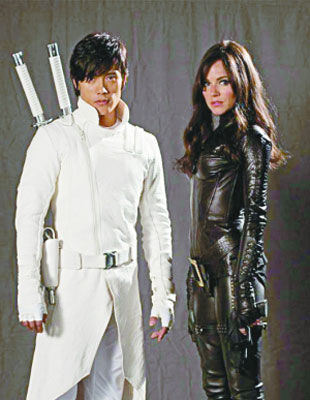 将于明年暑期档上映的真人改编电影《特种部队》(G.I.Joe)推出了一批角色人物作战酷照,首次进军好莱坞、在片中扮演“忍者白幽灵”(Storm Shadow)的韩国影星李秉宪,以一身白马王子打扮的造型出现,跟原著比有很大出入。“男爵夫人”西耶娜·米勒(The Baroness),为配合角色,除染黑并接长头发外,原本的戴眼镜造型,亦改用墨镜,并穿上了十几厘米高的松糕鞋。另外,主要角色中,丹尼斯·奎特将扮演“霍克将军”(General Hawk),而钱宁·塔图姆饰演“公爵”(Duke)。