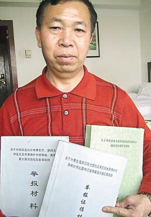 黄元勋向记者出示举报材料,这样的材料,他攒了有一箱子。