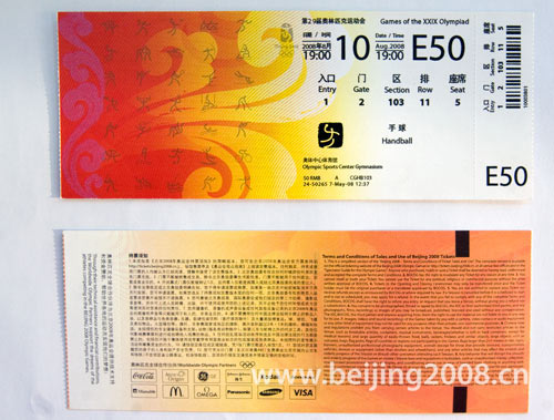 热敏票。图片来源:北京奥运会官方网站