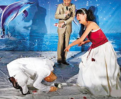 中新网5月4日电 汤镇业前晚(2日)在青岛郎园酒吧举行秘密婚礼,迎娶青岛姑娘文静。一对新人与海甚为有缘,几年前在海南岛海边相识,又情订于海边,最后选择在海边的酒吧结婚。婚礼现场汤镇业更重演跪地求婚一幕,温馨感人。