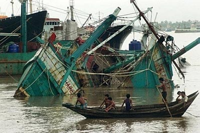 风暴造成缅甸大量渔船毁坏。