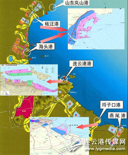 “一体两翼”组合大港,则是以连云港的现有港区为主体,跳出现有港池,向两翼拓展,形成“一体两翼”的港口组合港。根据规划,连云港港划分为连云、赣榆、徐圩、前三岛、灌河五个港区,规划港口岸线100.7公里。