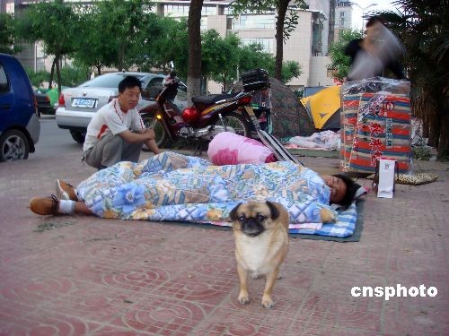 5月19日晚,陕西省应急办、省地震局通过当地新闻媒体发布安民告示:根据中国地震局专家会商意见,19—20日汶川震区发生较强余震的可能性较大,陕西省可能会有较强震感,特别是汉中、宝鸡等地,请做好防范准备。 接到告示后,宝鸡市民采取积极措施,冷静应对。千余名市民带着帐篷、被褥,扶老携幼,来到位于宝鸡市金台大道的市民广场度夜,以防余震带来的不测。5月19日晚18点至5月20日早8点,宝鸡市区没有发生明显震感。 中新社发 倪树斌 摄