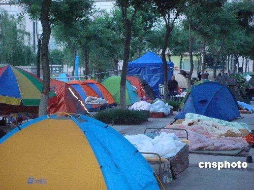 5月19日晚,陕西省应急办、省地震局通过当地新闻媒体发布安民告示:根据中国地震局专家会商意见,19—20日汶川震区发生较强余震的可能性较大,陕西省可能会有较强震感,特别是汉中、宝鸡等地,请做好防范准备。 接到告示后,宝鸡市民采取积极措施,冷静应对。千余名市民带着帐篷、被褥,扶老携幼,来到位于宝鸡市金台大道的市民广场度夜,以防余震带来的不测。5月19日晚18点至5月20日早8点,宝鸡市区没有发生明显震感。 中新社发 倪树斌 摄