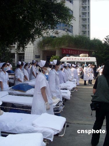 2008年5月19日下午5:00许,一批四川地震重灾区伤员在专车护送下从绵阳转移到南充市救治,这是南充收治的又一批重灾区伤员。据悉,当日下午,南充相关医院由普外科、骨科、脑外科、胸外科、心内科、感染科等科室组成的专家组,对从地震重灾区转入的伤员进行了全面会诊,对每位伤员做出了处理意见,特别针对重伤员的治疗方案进行了研究。此前,南充对医疗技术力量、设备、药品进行了充分的储备和准备,在完成日常医疗任务的同时,据悉,南充市的川北医学院附属医院、市中心医院分别准备了200多张床位,接受灾区伤员,保证重灾区伤员能得到及时有效的抢救和治疗。