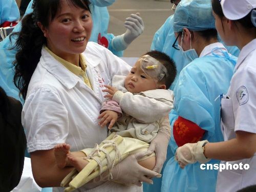 5月19日下午五点半多,四川汶川地震灾区的一批重伤员抵达重庆,重医附一院的医生护士象解放军野战医院抢救伤员一样投入抢救,犹如前方的战场。
