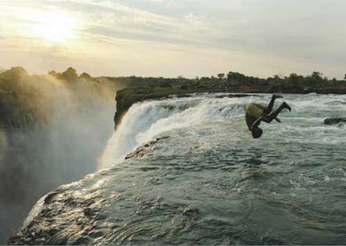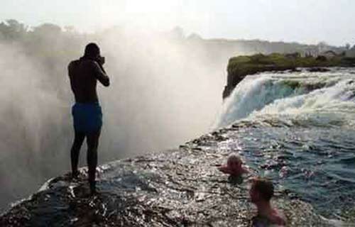 导游们从津巴布韦将那些胆量十足的游客护送上这个游泳池,一般每个人收取5美元的小费,而游客们一旦到达了这个“极限运动者天堂”,无一不被眼前的壮观景象所折服。