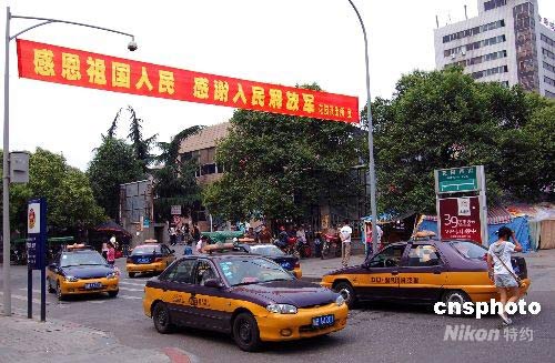 5月26日,四川地震灾区绵阳街头打出“感恩祖国人民,感谢人民解放军”的横幅。四川汶川8级大地震发生后,中国各地发扬“一方有难 八方支援”的精神,以捐款捐物、救治伤员、对口支援等形式全力支持灾区抗震救灾,约有10万余名军队人员参与到此次救援抗灾中。中新社发 刘万强 摄