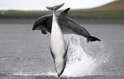 旁观者在看到瓶鼻海豚跳水嬉游的景象时经常会误认为他们在观看一场精心设计的演出,但对于那些在船上近距离观看海豚的人们来说,海豚跳水嬉游的景象很自然,它们完全是率性而为。那些幸运的游客可以看到三头海豚在蓝色的天空下跳水、海豚捕食鲑鱼的迹象。一位乘船观看海豚的游客称:“这真是难以置信,我们与它们那么接近,这看起来好像是它们试图想向我们展示它们的能力。它们动作的协调性难以置信,你有时会认为它们会撞到一起。观看它们捕食鲑鱼是一件更棒的事情。”