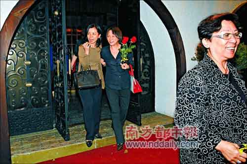 聚餐结束,伟仔嘉玲与伟仔母亲(右)依依话别。