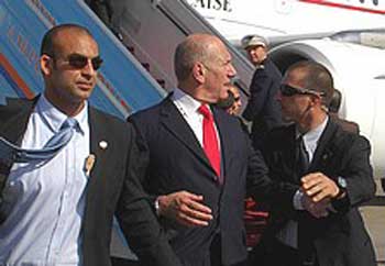以色列安全人员护送总理奥尔默特离开现场。(以色列耶路撒冷邮报图)